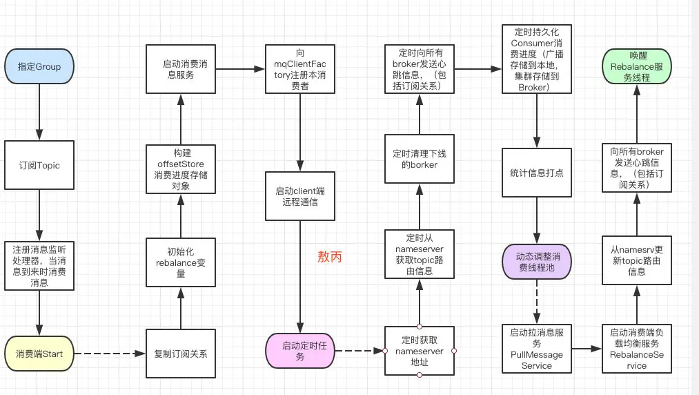 他的初始化流程很冗长,会根据配置创建很多线程池主要用来发送消息、拉取消息、查询消息、客户端管理和消费者管理,也有很多定时任务,同时也注册了很多请求处理器,用来发送拉取消息查询消息的。