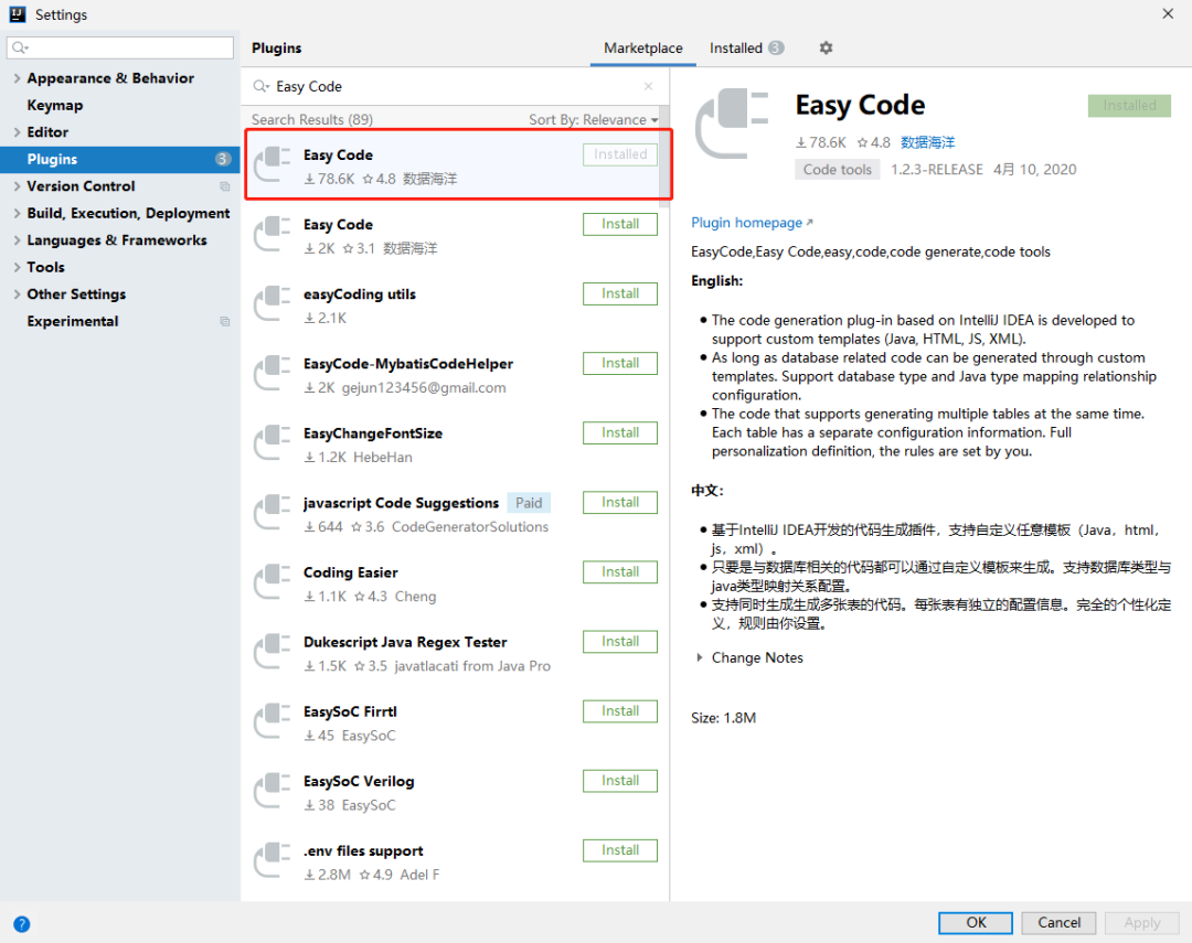 ##前言 EasyCode插件介绍与安装****简介EasyCode是基于IntelliJ IDEA开发的代码生成插件,支持自定义任意模板(Java,html,js,xml)。只要是与数据库相关的代码都可以通过自定义模板来生成。支持数据库类型与java类型映射关系配置。支持同时生成生成多张表的代码。每张表有独立的配置信息。完全的个性化定义,规则由你设置。