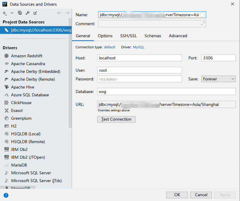 填写完之后也可以点击 Test Connection来测试连接,提示成功则配置正确。