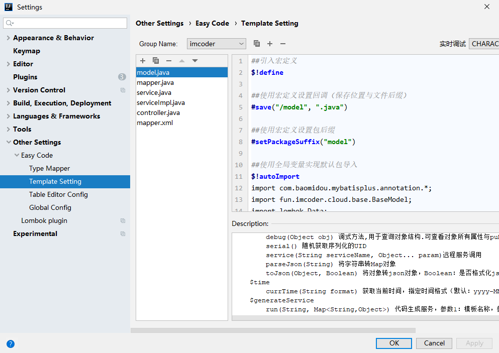 我建的模板文件是配合自己打包的一个jar来使用 imcoder-base.jar 的。