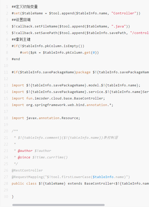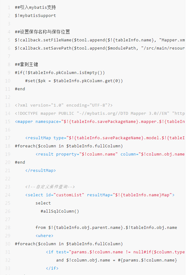 这种情况下生成的代码是比较原始的代码,通常不能满足我们的要求,因为我们项目中可能使用了一些其他框架,并且做了扩展,这时候就需要我们自定义模板来生成我们想要的代码。
