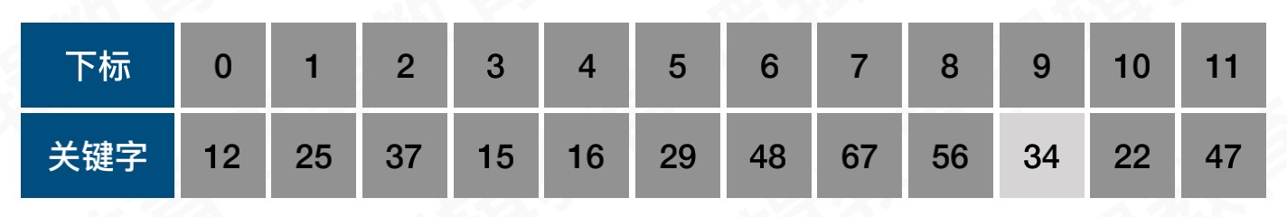int arr[HASHSIZE]={12,67,56,16,25,37,22,29,15,47,48,34};