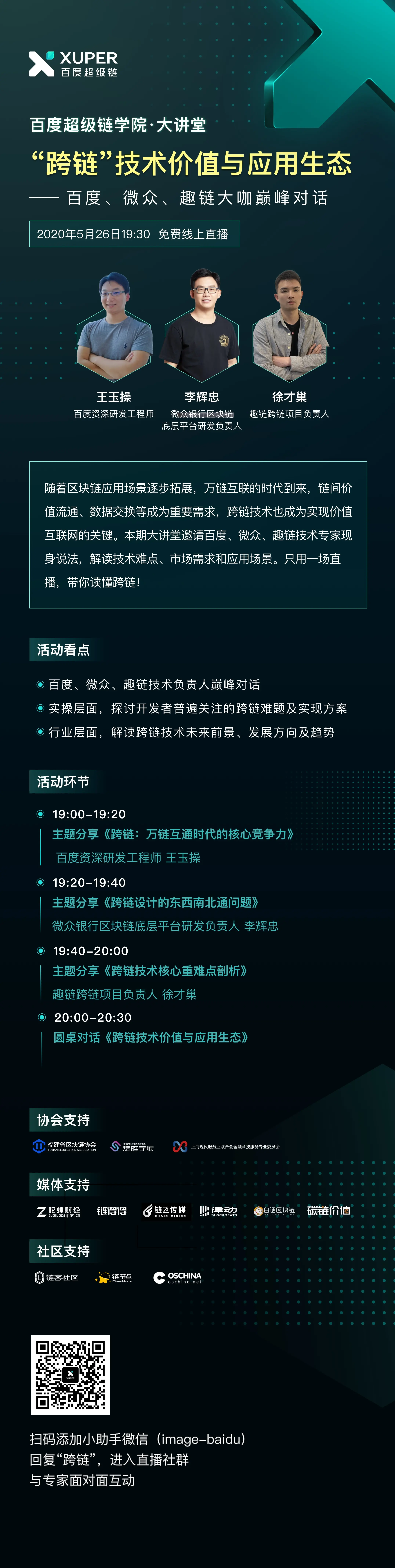 添加小助手微信(image-baidu),回复“跨链”,进入直播社群,与专家面对面互动。