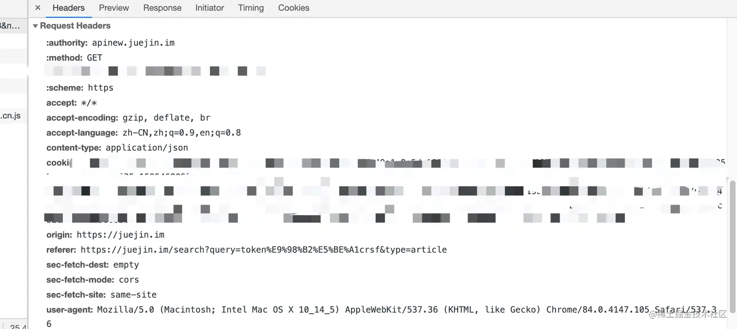 服务器校验请求中的referer/origin ,这两个字段会包含请求的来源域。(见下图掘金的请求)