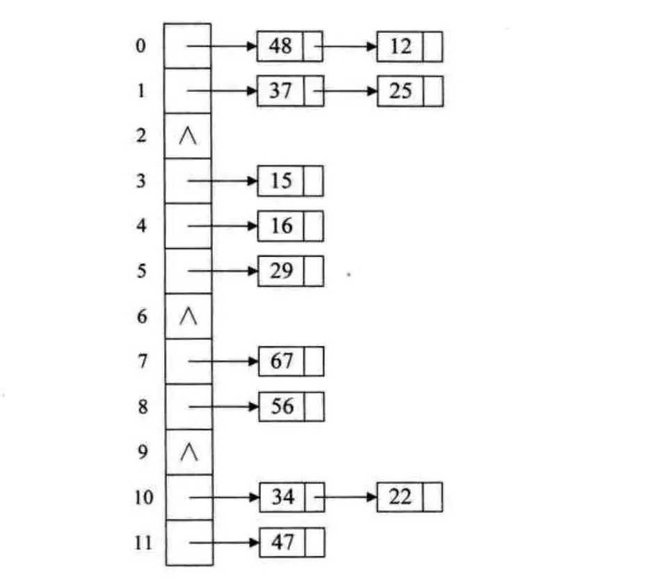 比如,关键字集合为{12, 67, 56, 16, 25, 37, 22, 29, 15,47,48,34},表长为12,我们可以使用散列函数。计算前5个数的时候,都没有冲突,可以直接存入:12对应0,25对应1,16对应4,67对应7,56对应8。然后当我们计算37的时候,发现37也对应1,而此时1的位置已经存储了25,这就发生了冲突。此时,我们就需要使用上面的公式,