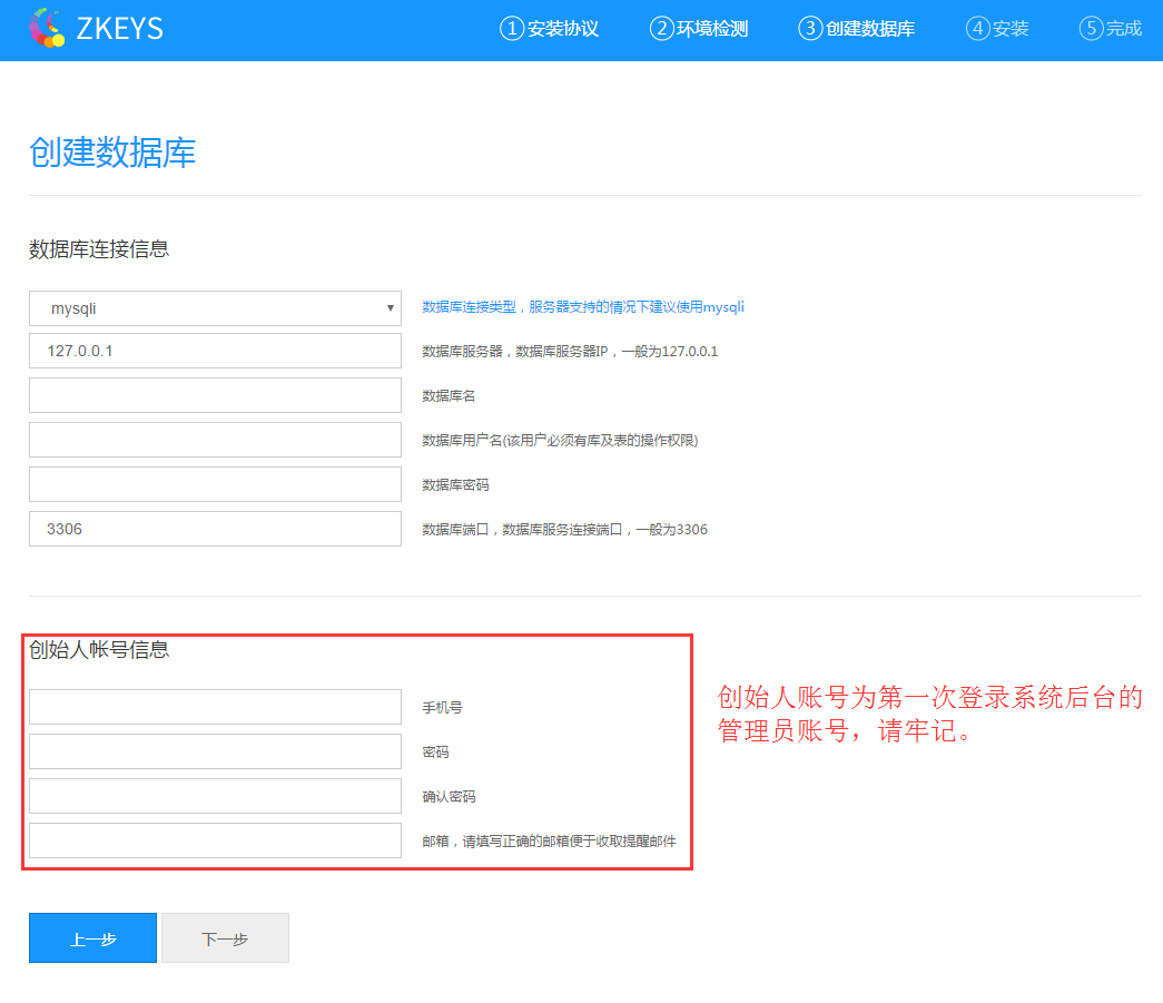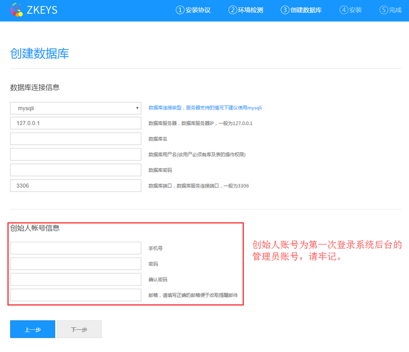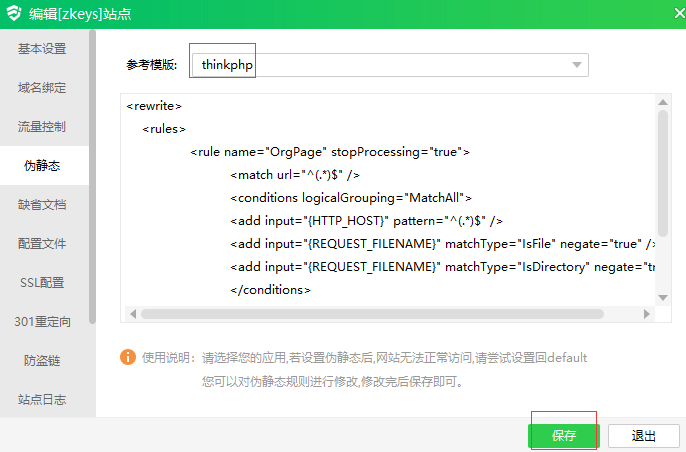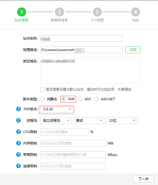 站点目录先默认,后面上传ZKEYS安装包后进行修改 设置站点名称,域名,脚本类型选择php