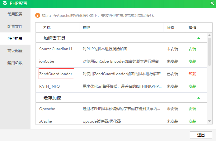 注:安装php5.6时请选择安装32位的, Zend Guard Loader扩展只有32位php才支持。