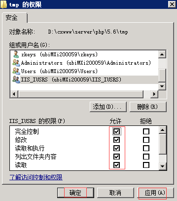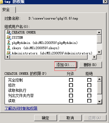 远程服务器,配置D:\cxwww\server\php\5.6\tmp文件权限