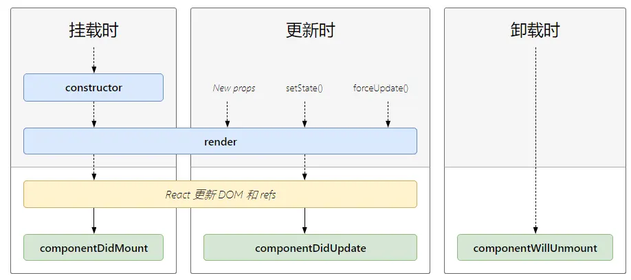 //这是div的unmount过程同理,React组件也有这些过程,我们称为生命周期