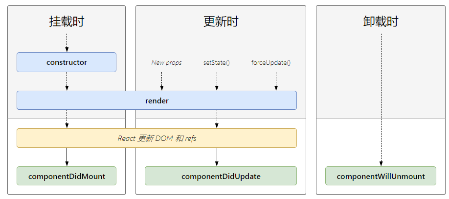 注:函数组件没有生命周期,可以用Hooks API来解决。