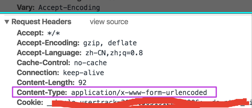这种post格式跟get的区别在于,get把转换、拼接完的字符串用‘?’直接与表单的action连接作为URL使用,所以请求体里没有数据;而post把转换、拼接后的字符串放在了请求体里,不会在浏览器的地址栏显示,因而更安全一些。