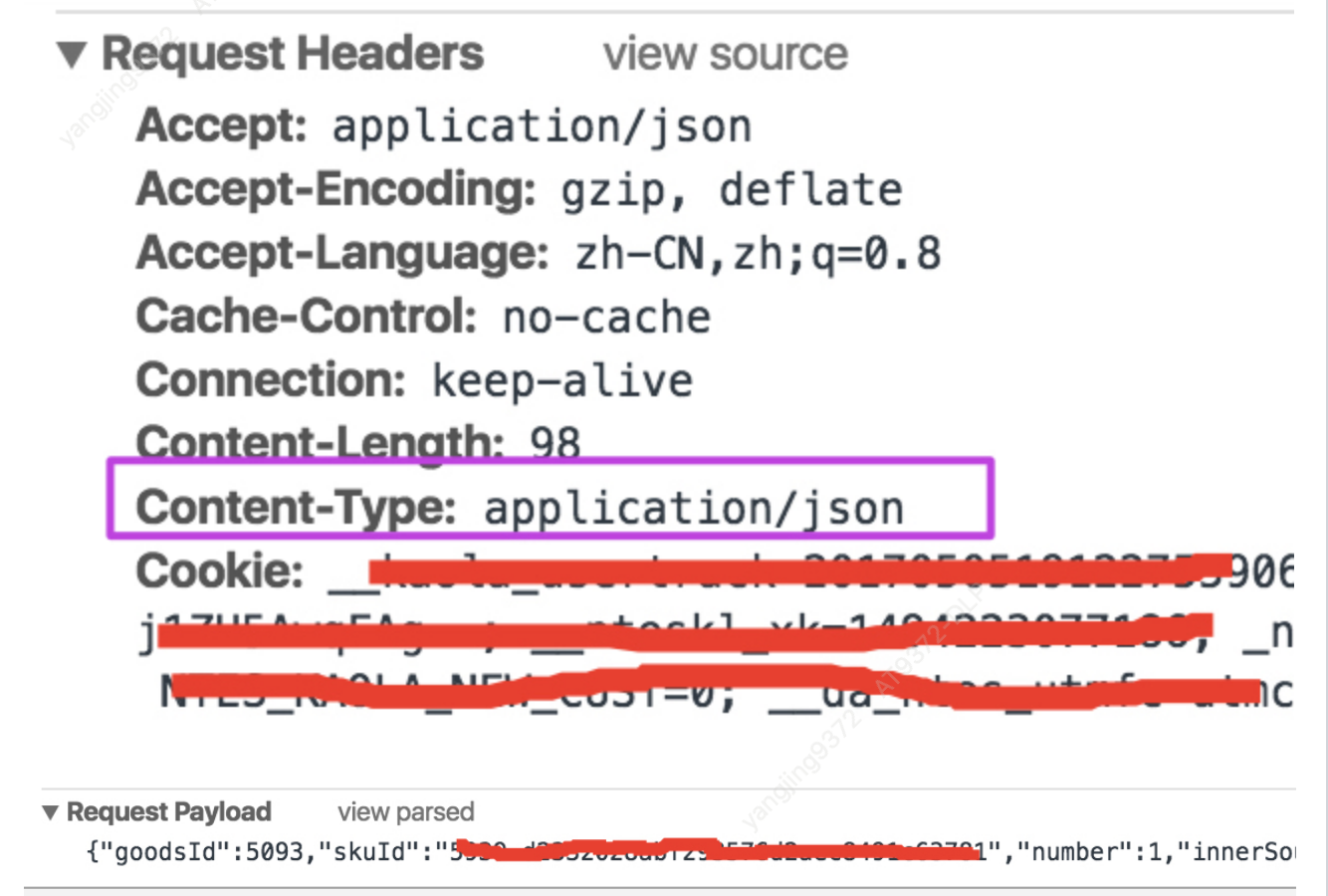 2.原生的AJAX请求头里设置Content-Type:application/json,或者使用默认的请求头Content-Type:text/plain;参数会显示在Request payload块里提交。