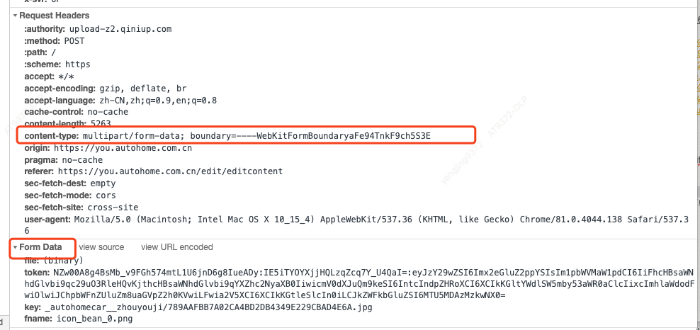 表示http请求中的multipart/form-data方式,会将表单的数据处理为一条消息,用分割符隔开,可以上传键值对或者上传文件。在传很长的字节(如文件、图片)时应用multipart/form-data格式。smtp等协议也使用或借鉴了此格式
