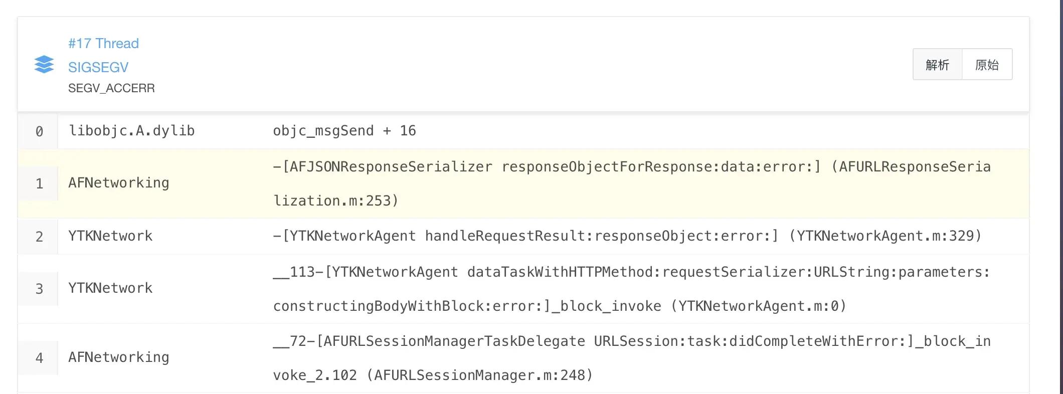项目中引用了YTKNetwork。在bugly中有crash上报。