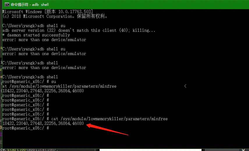 这 6 个数值分别代表 android 系统回收 6 种进程的阈值,这么看不方便查看,转换为 M 会更直观,这 6 个数值的单位为 page 1 page = 4 KB ,所以通过数值 * 4 / 1024 就能转换为M : 72 M , 90 M , 108 M , 126 M , 144 M , 180M