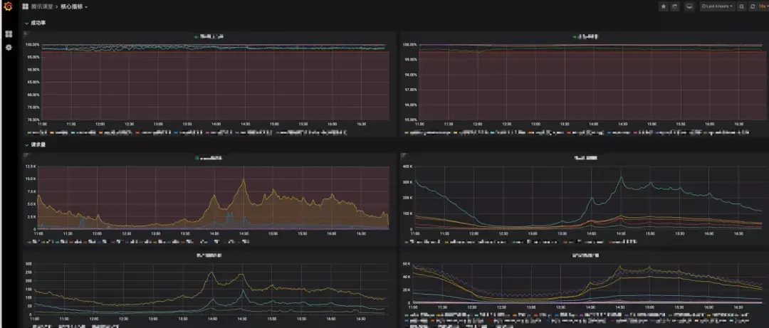 作为从Kibana分化出来的Grafana,可以精美地展示数据,灵活地可视化操作,是作为监控开放平台的极佳选择,所以腾讯课堂基于Grafana构建的质量看板,对压测、监控、提前发现问题起到了非常大的作用。
