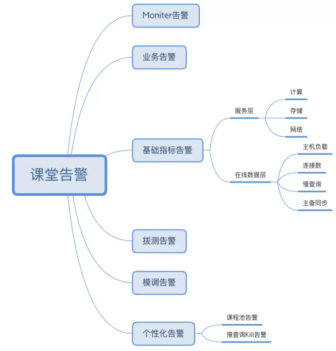 个性化告警主要是指与具体领域知识强耦合的个性化告警,譬如极速版的课程池告警、在线数据层的慢查询超时SQL自动Kill告警等。