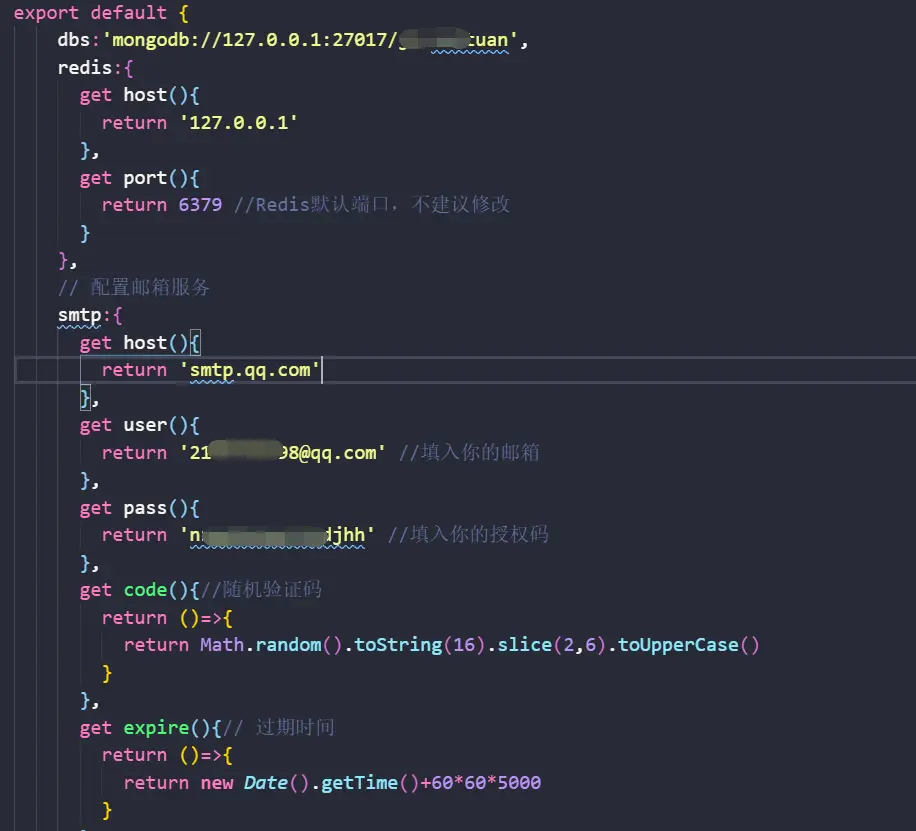 2. 数据库(Redis & MongoDB)& QQ邮箱SMTP服务相关配置