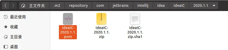 mkdir -p com/jetbrains/intellij/idea/ideaIC/2020.1.1/ - 将下载的ideaIC-2020.1.1.zip包和ideaIC-2020.1.1.pom复制到