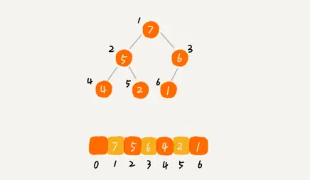 因为堆是一个完全二叉树所以比较适合用数组来存储,这样我们不需要存储左右子节点对应的指针,能够节省存储空间。堆我们默认从下标1开始存储数据。