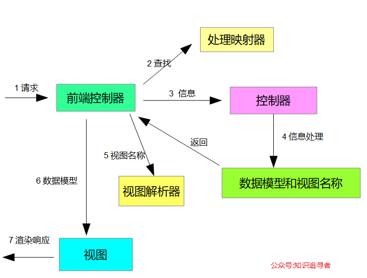 控制器处理数据;数据处理完成后才会产生数据模型(Model)和视图名称,返回给前端控制器; - 前端控制器将根据视图名称通过