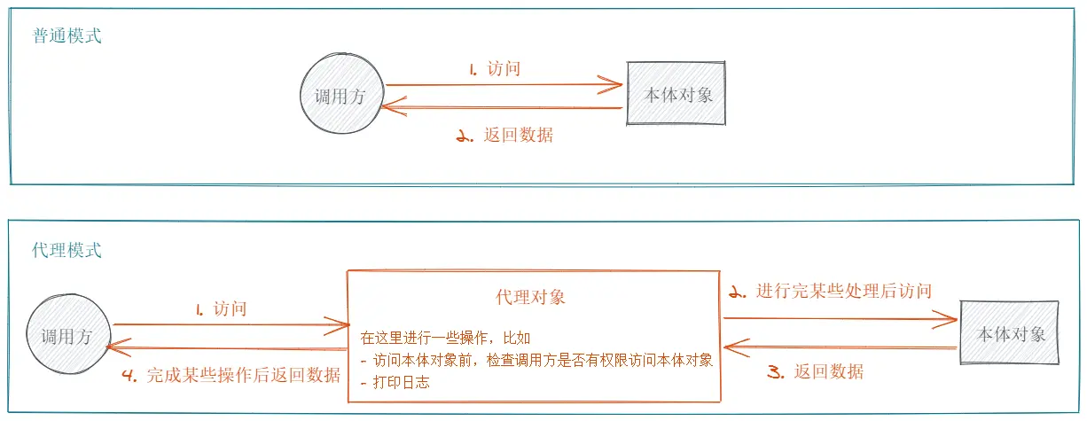 - 可以通过代理对象来控制本体对象而不必修改调用方代码和本体对象;
