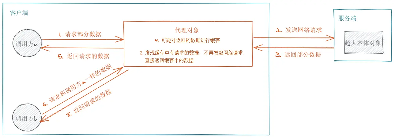 举个例子,我们有一个存放着超多数据的对象,如果把这个对象直接在程序中初始化的话,肯定会占据很多内存;而且,程序不一定一开始就需要用到这个对象,也不一定需要这个对象的所有数据;所以,比较经济的方法是,把这个超大对象放在服务端,当程序需要的时候再发起网络请求去访问。