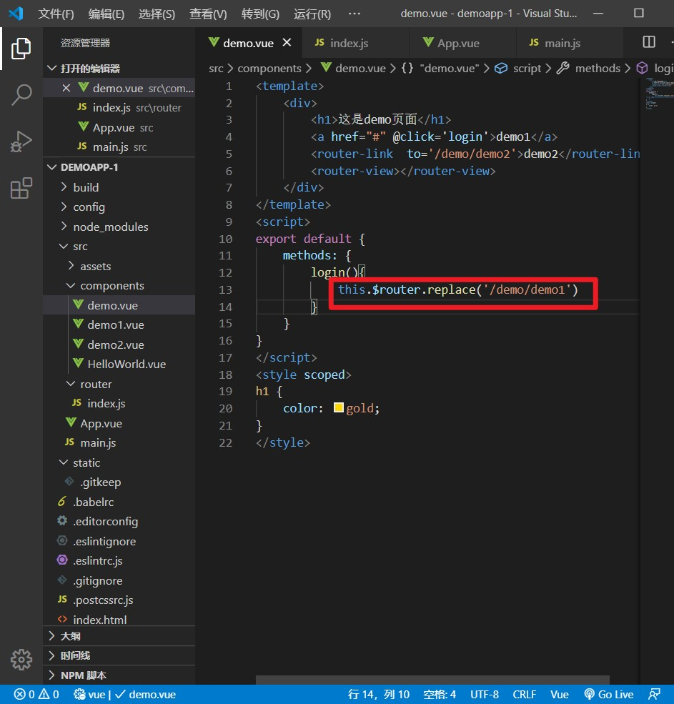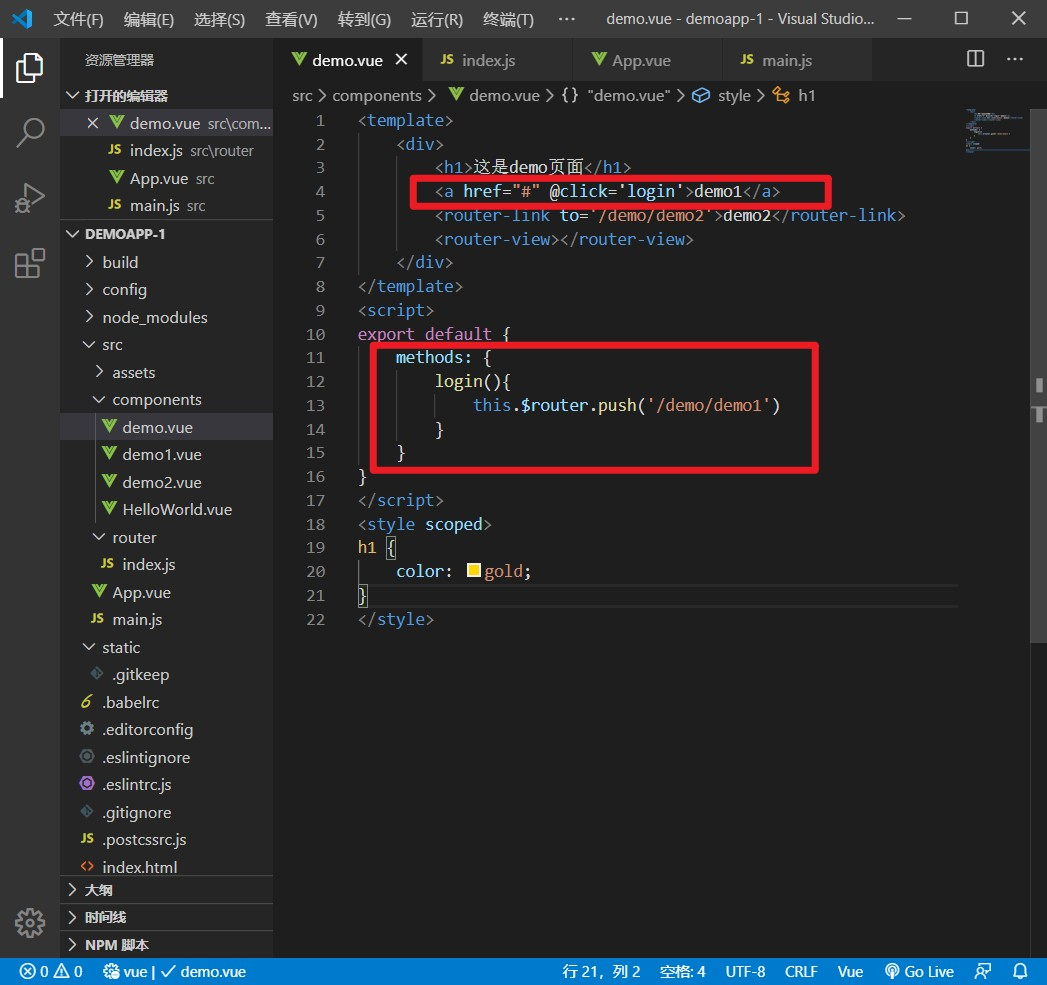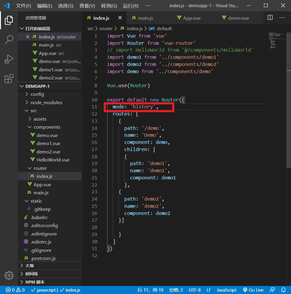 - 点击 demo1 出现视图,但是地址栏未发生变化