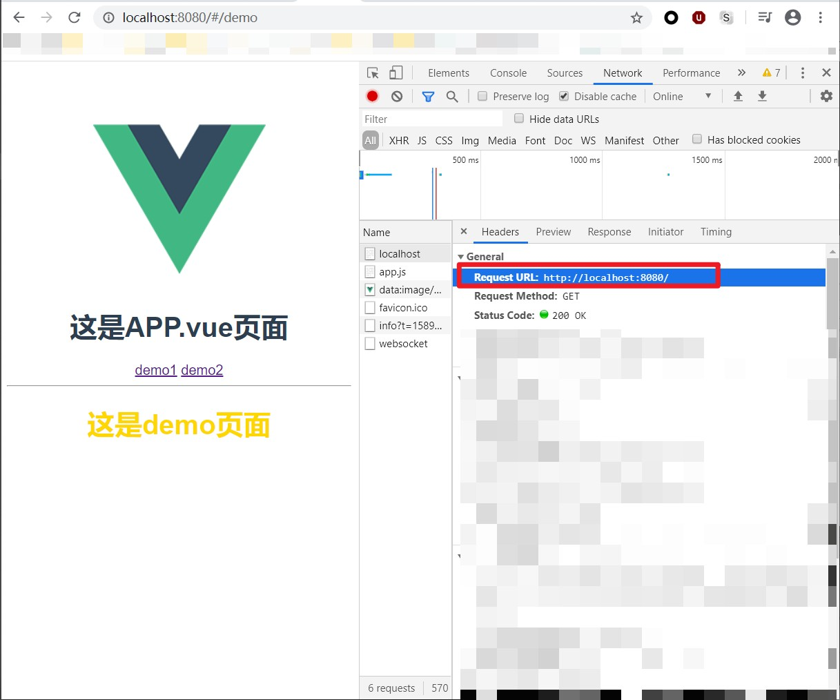 将 demo2 重定向到 demo,点击 demo2 链接显示的是 localhost:8080/#/demo