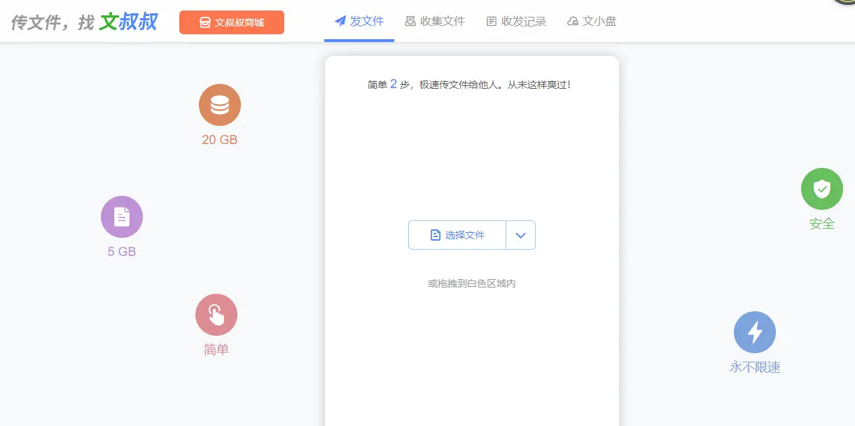 文叔叔是一款可以将任意文件,简单、安全、极速传给你朋友的工具。网址:https://www.wenshushu.cn/