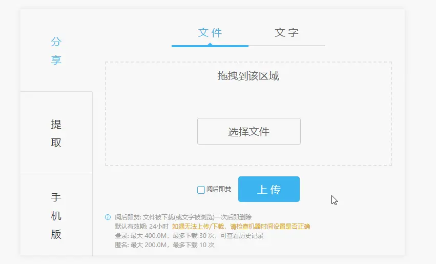 - 不用登录,只需两步即可传递文件;