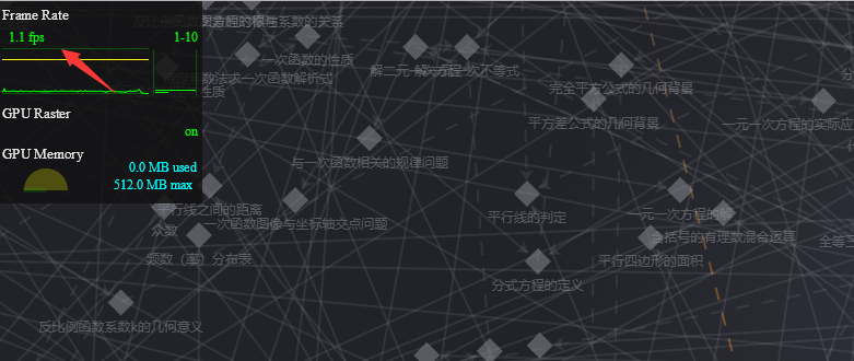 假设,按照每次都是 142ms,那么 1s 内,可能我们才能执行六七帧,是不是意味着,我们的帧率最大值也就六或者七?于是去开发者工具里边,查看了一下帧率 FPS 有多少,果然,预言家小彭~