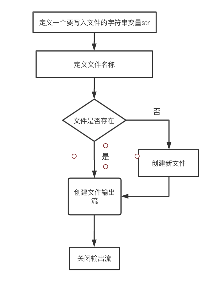 在这里我们把字符串str写入了文件,可能你还会疑问为什么是FileOutputStream(文件输出)而不是FileInputStream(文件输入)。简单来说,这里的输入输出是相对于我们程序来说的,我们这个程序输出了一个字符串到文件中,所以我们称之为文件输出流。