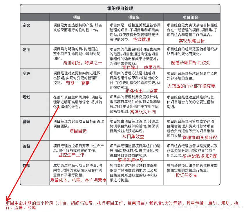 - project:项目是为创造独特的产品、服务或成果而进行的临时工作。