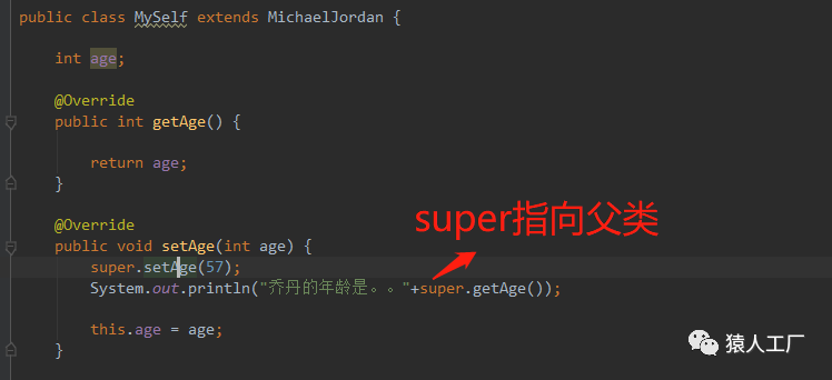 想知道是怎么做到和乔丹一样强大的吗?Java提供了这种机制——继承。子类可以继承父类的属性和方法,子类可以直接访问父类的非私有属性和行为。被继承的类被称作父类、超类(super