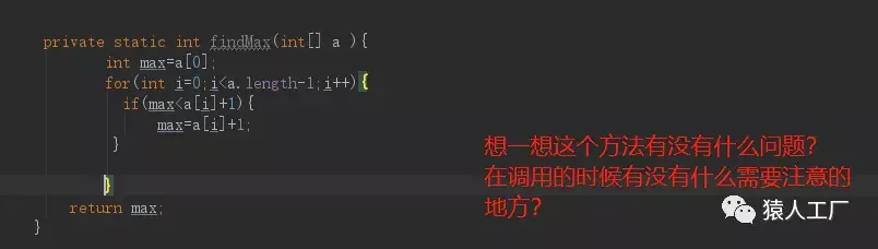 下面我们来处理一个实际性的问题——编写一个方法,把数组a中的最大元素找出来。
