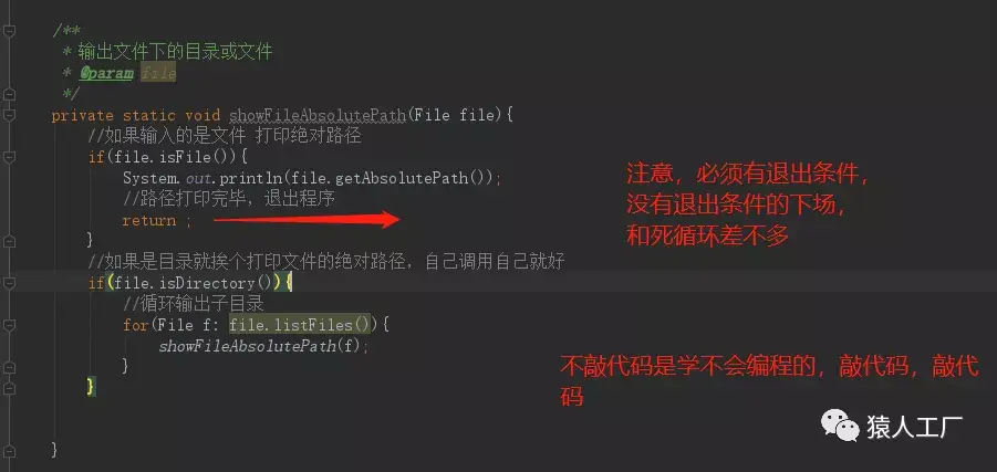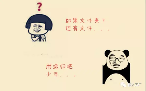 所谓递归,就是方法(也叫函数)中,自己调用自己的行为。当我们遇到一个问题的子问题和原始问题的解决办法是一致的时候,我们考虑使用递归来解决问题。比如遍历某个文件夹。文件夹下有文件,也有子文件夹,子文件夹下还有文件夹或者文件。