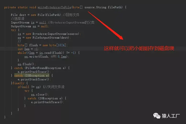 /** *使用缓冲区读取文件 * @param file * @return */private static String readFileBuffered(File file){ BufferedInputStream bis=null; try { bis=new BufferedInputStream(new FileInputStream(file)); int len; byte[] b = new byte[1024]; StringBuilder builder=new StringBuilder(); while((len=bis.read(b))!=-1){ String str = new String(b); builder.append(str); } return builder.toString(); } catch (FileNotFoundException e) { e.printStackTrace(); } catch (IOException e) { e.printStackTrace(); }finally{ try { if(null!=bis){ bis.close(); } } catch (IOException e) { e.printStackTrace(); } } return null;}/** *使用缓冲流写入文件 * @param file * @param content */private static void StringWriteFileBuffered(File file,String content){ BufferedOutputStream bos=null; try { bos=new BufferedOutputStream(new FileOutputStream(file)); byte[] b = content.getBytes(); bos.write(b); } catch (FileNotFoundException e) { e.printStackTrace(); } catch (IOException e) { e.printStackTrace(); }finally{ try { if(null!=bos){ bos.flush(); bos.close(); } } catch (IOException e) { e.printStackTrace(); } }}我们再看看字符缓冲流:
