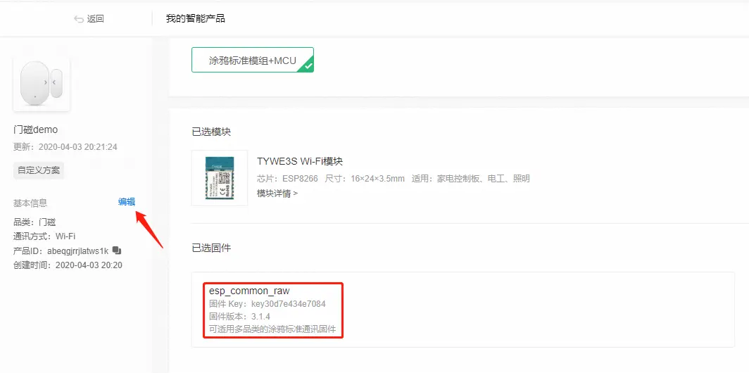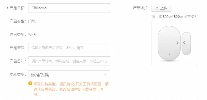 具体步骤教程已比较详细,这里不做赘述,不过在创建产品过程中要注意我们要创建的产品是门磁传感器,MCU 对接时选择自定义方案,才能下载到 MCU 开发资料包。