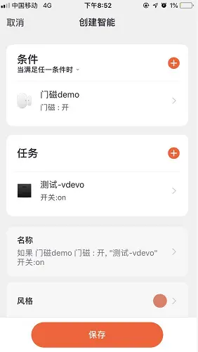 所有功能调试通过后,App 端已经可以接收到门磁感器的数据。智能传感器最大的应用场景是用来收集传感数据来和其它产品进行联动,如果开发者手中有涂鸦生态设备或开发板,可以在App端实现场景联动功能的配置。