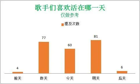 继续分析民谣歌手的歌词,探索民谣歌手们到底喜欢活在哪一天,详情如下图所示: