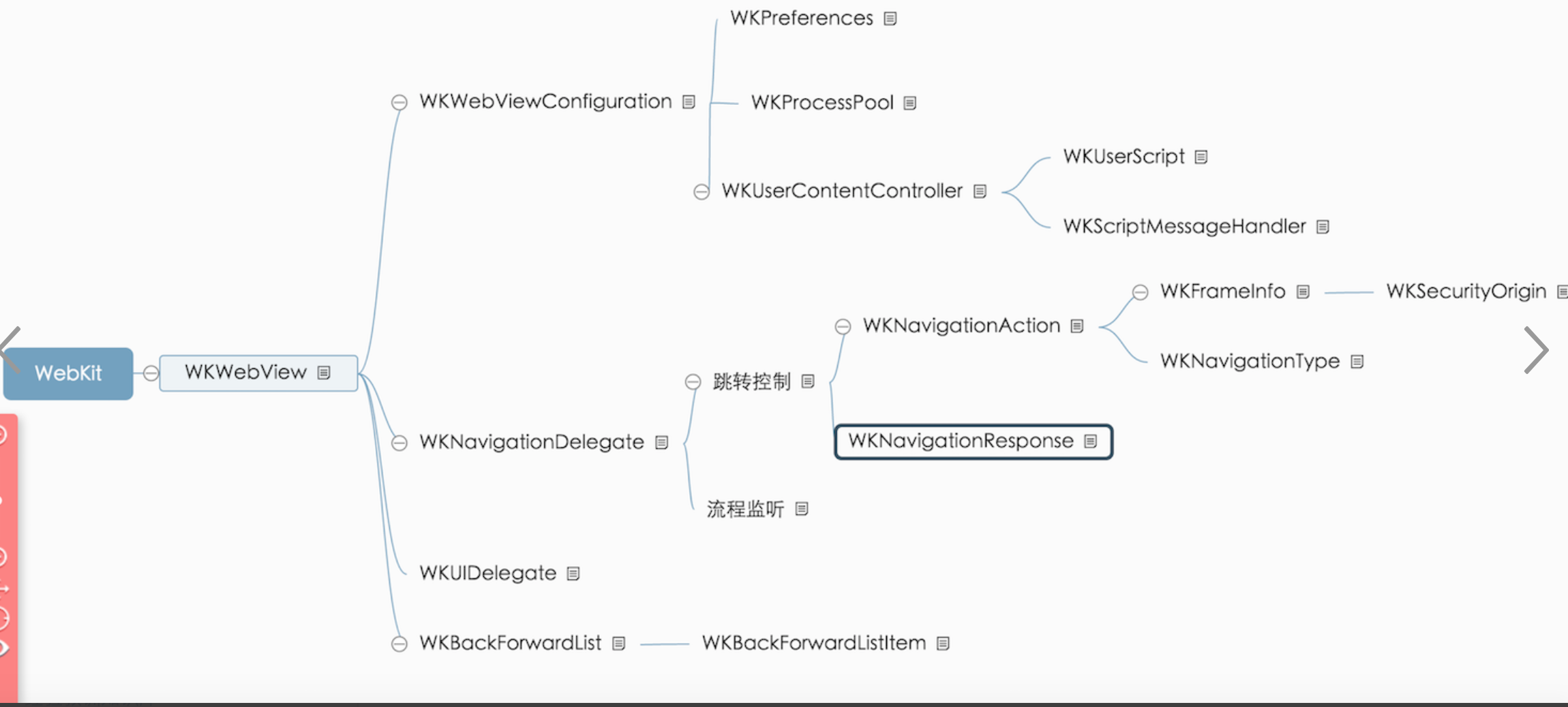 WKNavigationDelegate: 提供了追踪主窗口网页加载过程和判断主窗口和子窗口是否进行页面加载新页面的相关方法。