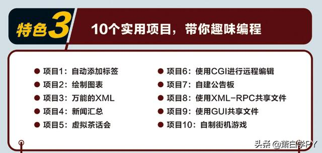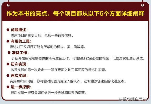 特别是将本书内容知识点用10个非常有实战意义的项目结合了起来,真正手把手的教授读者python编程从理论到实践的过程。(附项目源码)