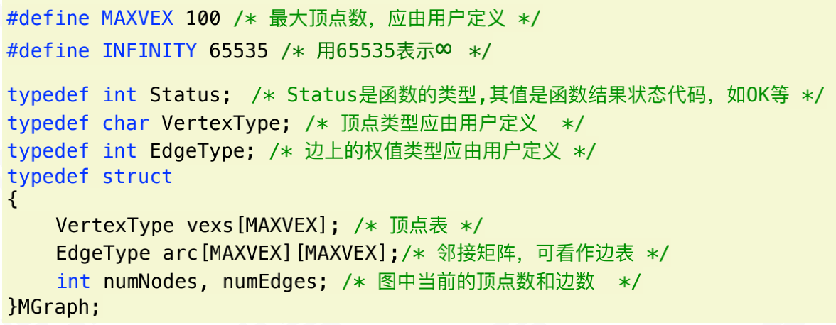 #define MAXVEX 100 /* 最大顶点数,应由用户定义 */