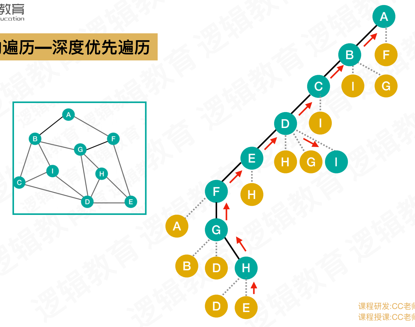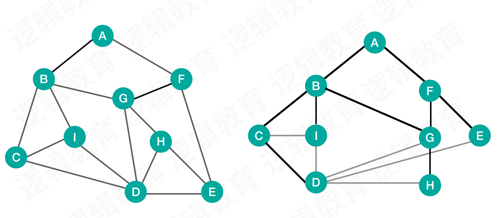 上图遍历结果 :A - B - F - C - I - G - E - D - H