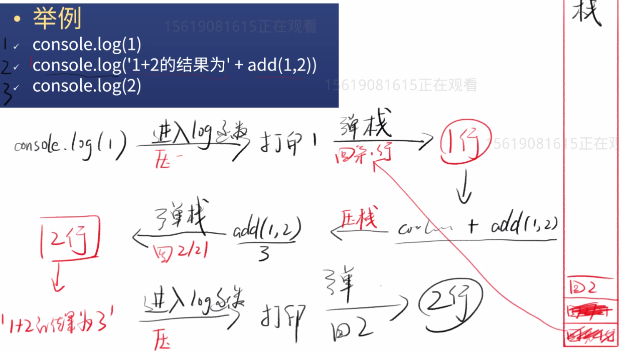 - js引擎在调用一个函数前,需要把函数所在的环境push到一个数组里面,这个数组叫做调用栈,等函数执行完了,就会把环境弹出来(pop),然后return到之前的环境,继续执行后续代码
