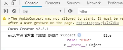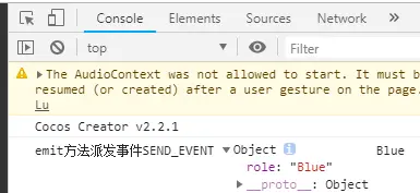 运行结果如下(说明依然只有Blue自己这个节点接收到了emit派发的事件SEND_EVENT):