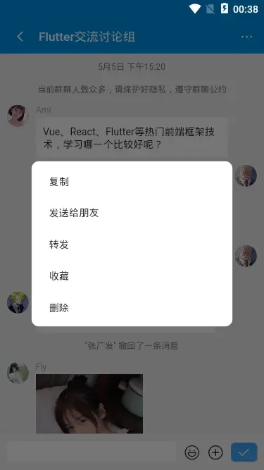 // 滚动消息至聊天底部 void scrollMsgBottom() { timer = Timer(Duration(milliseconds: 100), () => _msgController.jumpTo(_msgController.position.maxScrollExtent)); } 行了,基于flutter/dart开发聊天室实例就介绍到这里,希望能喜欢~~💪💪