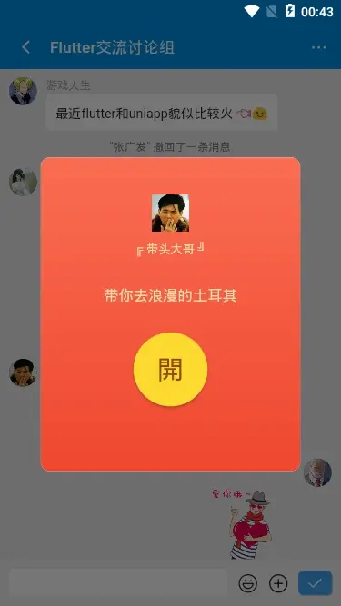 Flutter是目前比较流行的跨平台开发技术,凭借其出色的性能获得很多前端技术爱好者的关注,比如阿里闲鱼,美团,腾讯等大公司都有投入相关案例生产使用。 flutter_chatroom项目是基于Flutter+Dart+chewie+photo_view+image_picker等技术开发的跨平台仿微信app聊天界面应用,实现了消息/表情发送、图片预览、长按菜单、红包/小视频/朋友圈等功能。