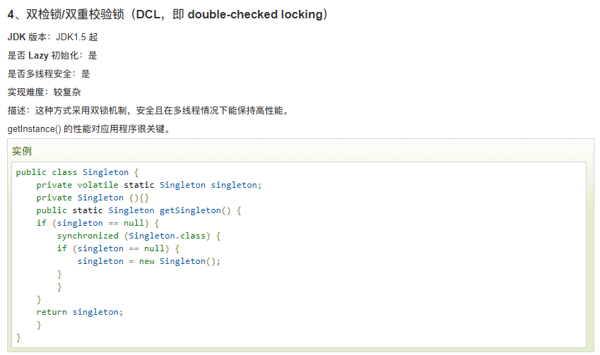 1、要求生产唯一序列号。 2、WEB 中的计数器,不用每次刷新都在数据库里加一次,用单例先缓存起来。 3、创建的一个对象需要消耗的资源过多,比如 I/O 与数据库的连接等。 注意事项:getInstance() 方法中需要使用同步锁 synchronized (Singleton.class) 防止多线程同时进入造成 instance 被多次实例化。